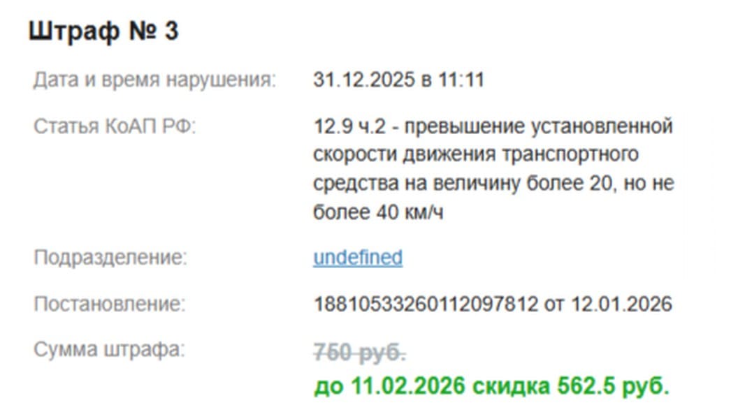 Или, например, 6 декабря 2025 года – в субботу – также выписали штраф за превышение скорости. Произошло это в 11:13 в Калуге. Никаких официальных поездок в тот день губернатор Александр Авдеев, судя по его соцсетям, не совершал, так что единственное логичное предположение – что глава региона ездил на этом авто домой.