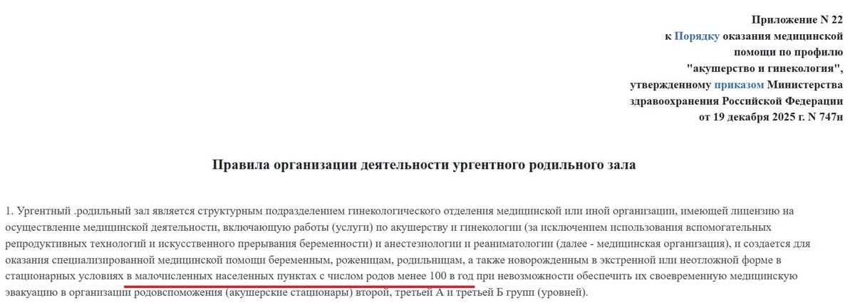Так, согласно документу, ургентный родильный зал предназначен для оказания экстренной помощи в небольших населенных пунктах, где невозможно обеспечить своевременную эвакуацию пациентов в роддома и перинатальные центры. Но ключевой момент в количестве родов.