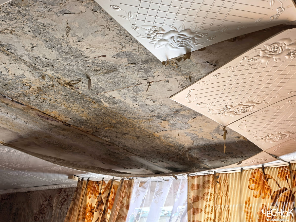 Крыша в доме течет уже много лет. Жители обращались в разные инстанции и надзорные органы, но результата не было. В этом году из-за сильных снегопадов ситуация стала совсем невыносимой. Тазики и ведра расставлены по всему дому. Кому-то повезло, и родственники могут приютить, но некоторым пойти совершенно некуда.